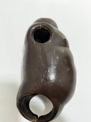 Reliance doll parts manufactured in Canada in 1940. Includes a brown composition head with painted features, yarn hair, and associated torso and arms. The doll parts show signs of wear such as cracks, scuffs, and surface wear. Marked 'Reliance Made in Canada' on the back of the head. Parts are incomplete, requiring assembly or restoration.