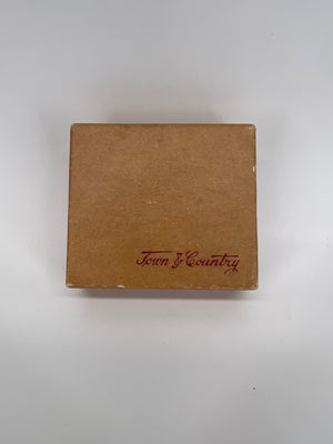 1950s Town & Country cufflinks featuring horse head designs crafted with mother-of-pearl inlays and red accent stones. Made in the USA, these cufflinks exhibit a gold-tone finish and come in their original box. The set shows minor signs of wear consistent with age, and the original packaging is included.
