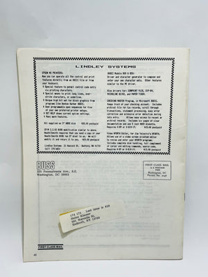 1980 publication titled 'The Buss Directory Revision 5,' offering over 150 sources for completing Heath or Zenith computer systems. Manufactured in the United States. Contains detailed advertisements and information on computer hardware, such as 64K memory for the H8. Paperback format, priced at $7.50 at the time. Includes specialized content for computing enthusiasts.
