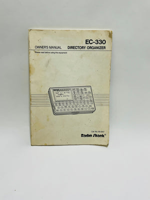 Radio Shack owner's manual for the EC-330 Directory Organizer, produced in the 1980s. Includes detailed operating instructions and warranty information. Printed in Korea. Contains visible wear, including creases and stains, but all pages appear intact. Useful for collectors or as a reference for the EC-330 Directory Organizer.