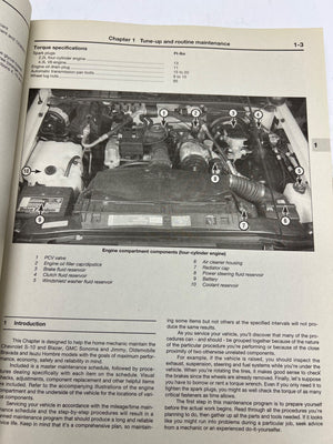 This is a comprehensive Haynes automotive repair manual for Chevrolet S-10, GMC Sonoma, and other models from 1994 through 1996. Published by Haynes Publishing Group in England, it includes detailed instructions, diagrams, and troubleshooting guides. The manual covers 2WD and 4WD vehicles and provides maintenance tips for Blazer, Jimmy, Oldsmobile Bravada, and Isuzu Hombre models.