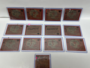 This lot features a collection of 13 football cards showcasing NFL legends, key players, and record-breaking moments. Included are players like Joe Montana, Tony Dorsett, and Otis Wilson, alongside a Super Bowl XVII commemorative card (Redskins vs. Dolphins). The selection spans various teams, including the Bears, Cowboys, and Falcons, offering a snapshot of football history. All cards are preserved in protective sleeves.