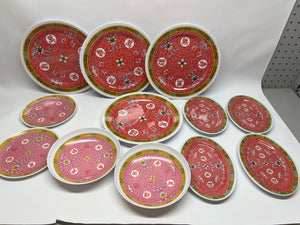 13-Piece Vintage Chinese "Longevity" Melamine Plate Set - Red