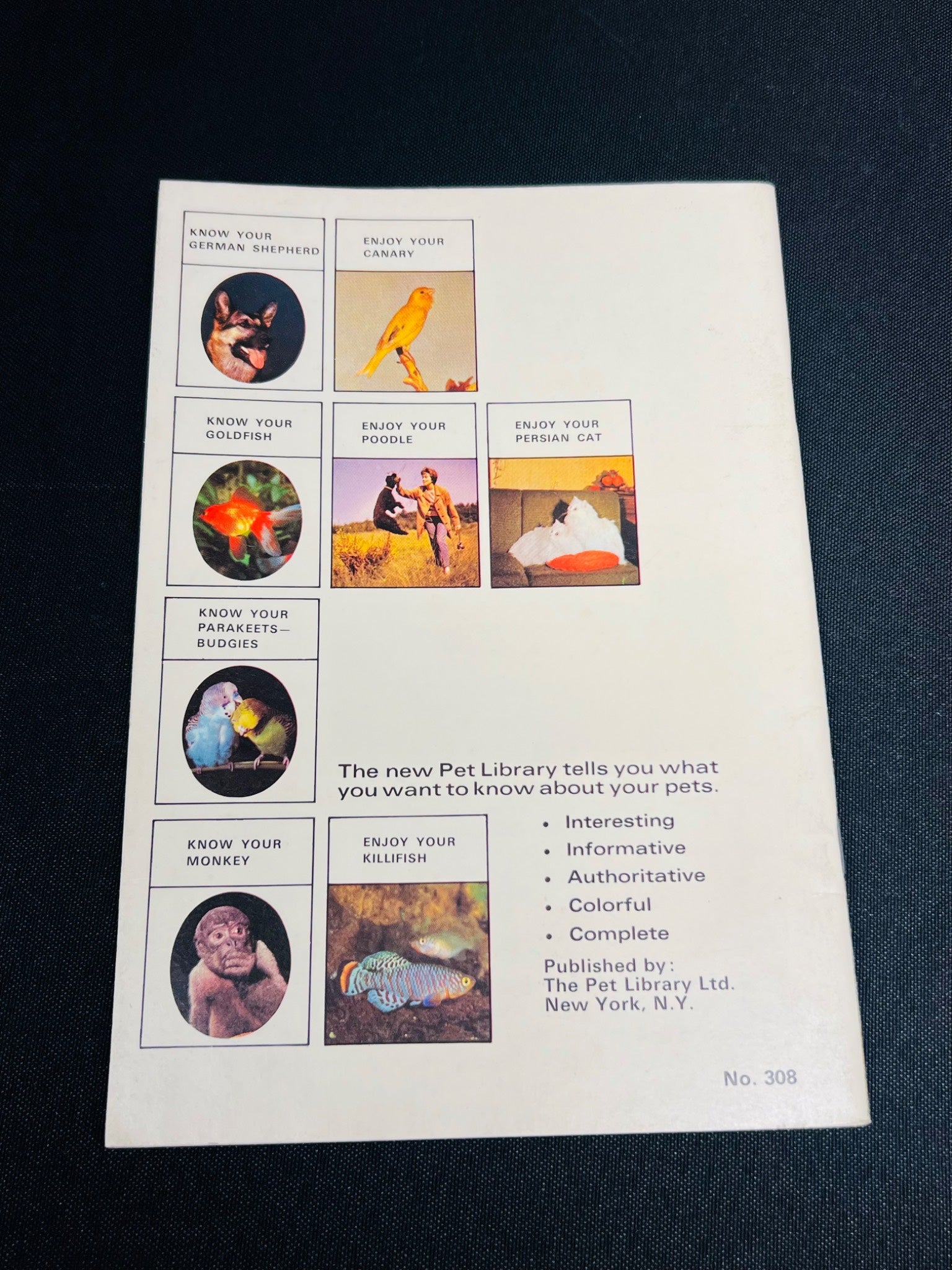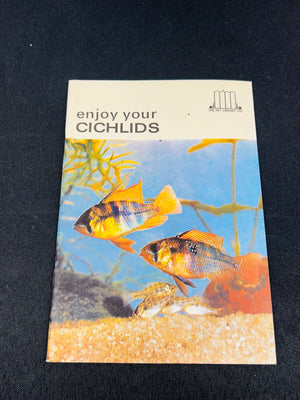 Book titled ‘Enjoy Your Cichlids,’ published by The Pet Library Ltd. This informative guide covers caring for and understanding cichlid fish. It includes colorful illustrations and authoritative content. Published in New York, NY, with copyright reserved to Pet Library Ltd. No. 308.