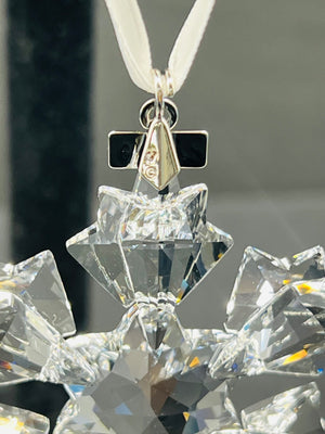 Swarovski 2010 Annual Edition crystal snowflake ornament with faceted design and ‘2010’ silver-tone tag. Comes with the original blue triangular box and certificate. Made in Austria. Includes a white ribbon for hanging. Item is in excellent condition.