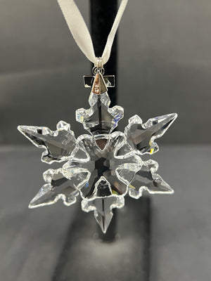 Swarovski 2020 Annual Edition Ornament featuring a clear snowflake design crafted from faceted crystal. Includes a white satin ribbon hanger and is accompanied by its original triangular presentation box. Item is in excellent condition and marked with ‘2020’ on the display charm. Made in Austria.
