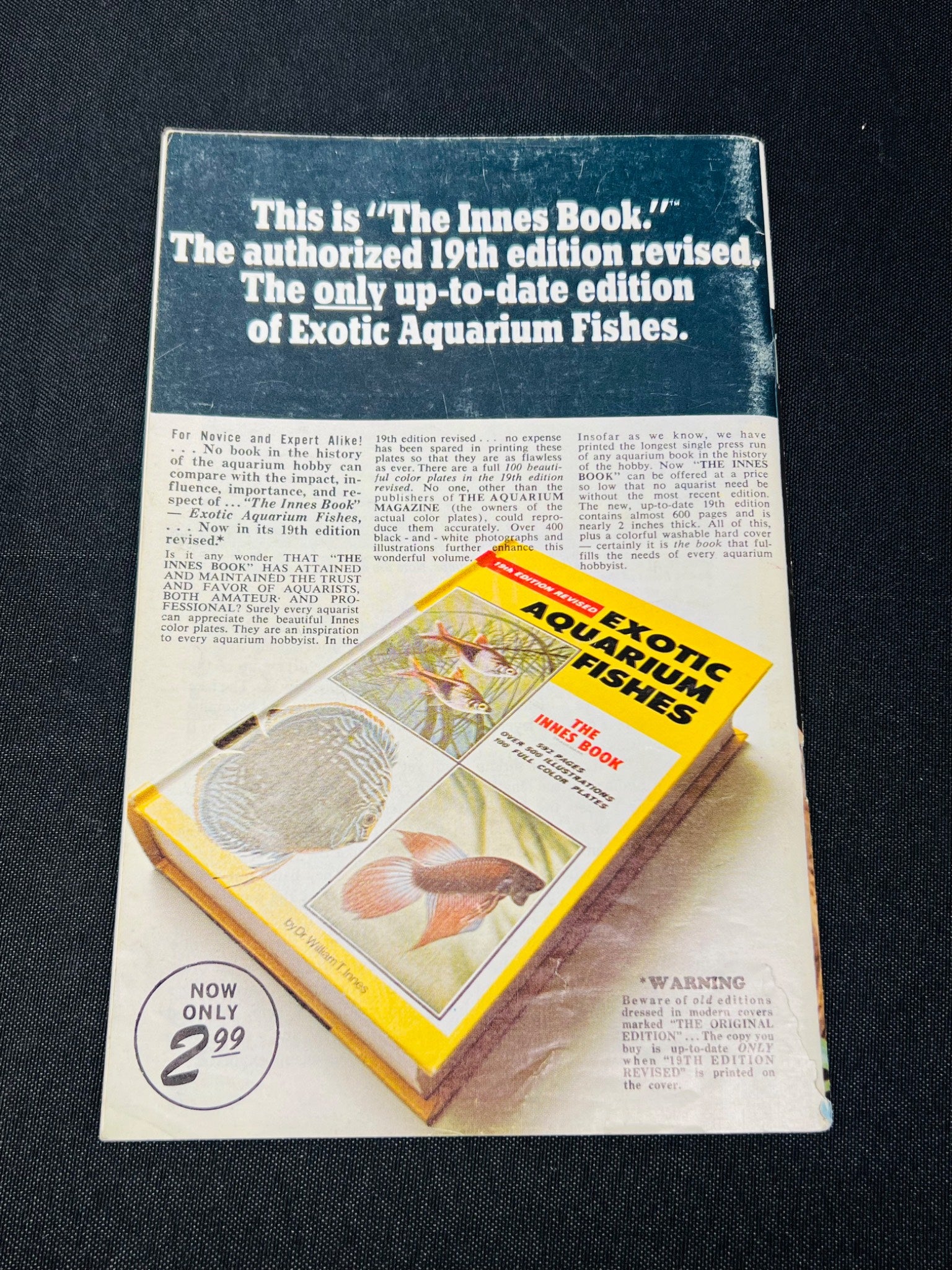 April 1971 issue of ‘The Aquarium’ magazine, Volume 40, Number 4. Includes articles on the Congo Tetra and Decor Ideas for Home Aquariums. Features period-appropriate advertisements and detailed contents page. Kept in readable condition with some signs of handling.