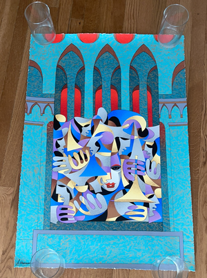 Numbered HC 58/90 in lower right corner and signed by the artist in the lower left. It measures 25 x 37 1/2 unframed. This is an HC print! Stunning colors and astonishing geometric shapes Will be shipped in a tube and shipping service can be negotiated. Will ship worldwide, please ask for a quote if you are not in the U.S or Canada.