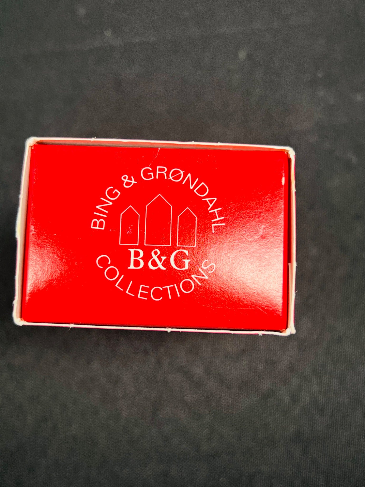 Bing & Grondahl (B&G) Heavenly Music fine porcelain figurine featuring a violin. Crafted with 24K gold accents, this figurine is part of the Heavenly Music collection (No. 2 of 12). Includes its original red box showcasing the collection’s details. Excellent condition with precise detailing throughout.