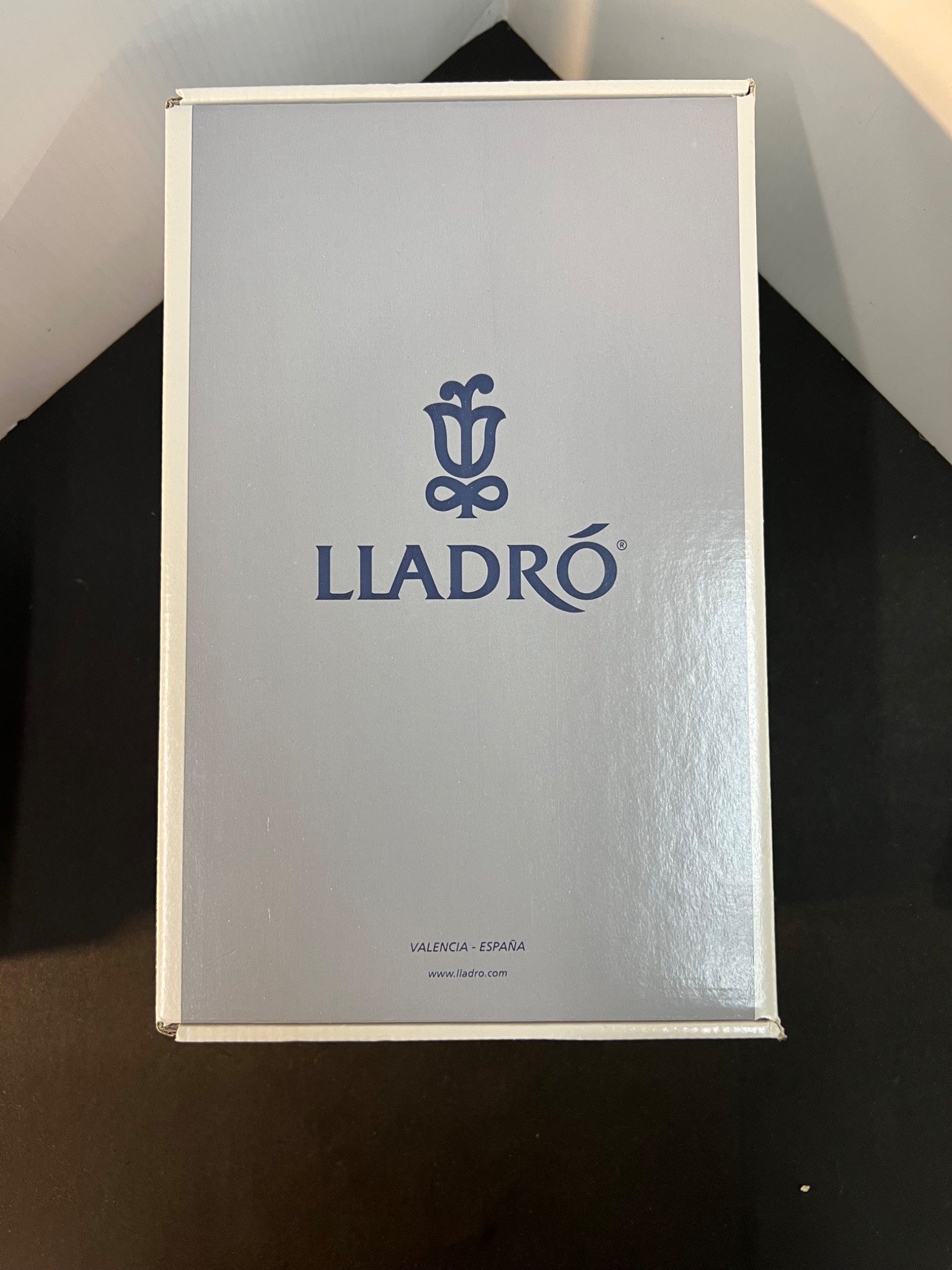 Lladro porcelain figurine from the Winter Whimsy Collection, model number 8168. Depicts a girl interacting with a snowman, finished in soft pastel colors. Handcrafted in Spain in 2004. Includes original box, packing materials, and documentation. Dimensions and condition are excellent, appearing unused or minimally handled.