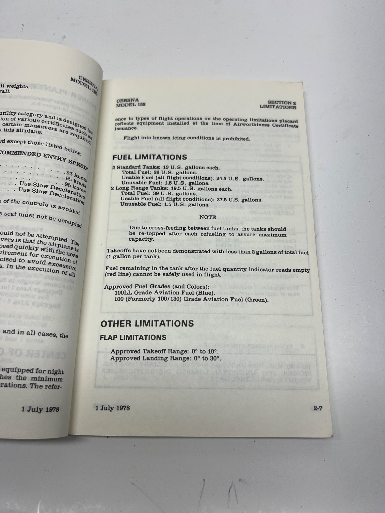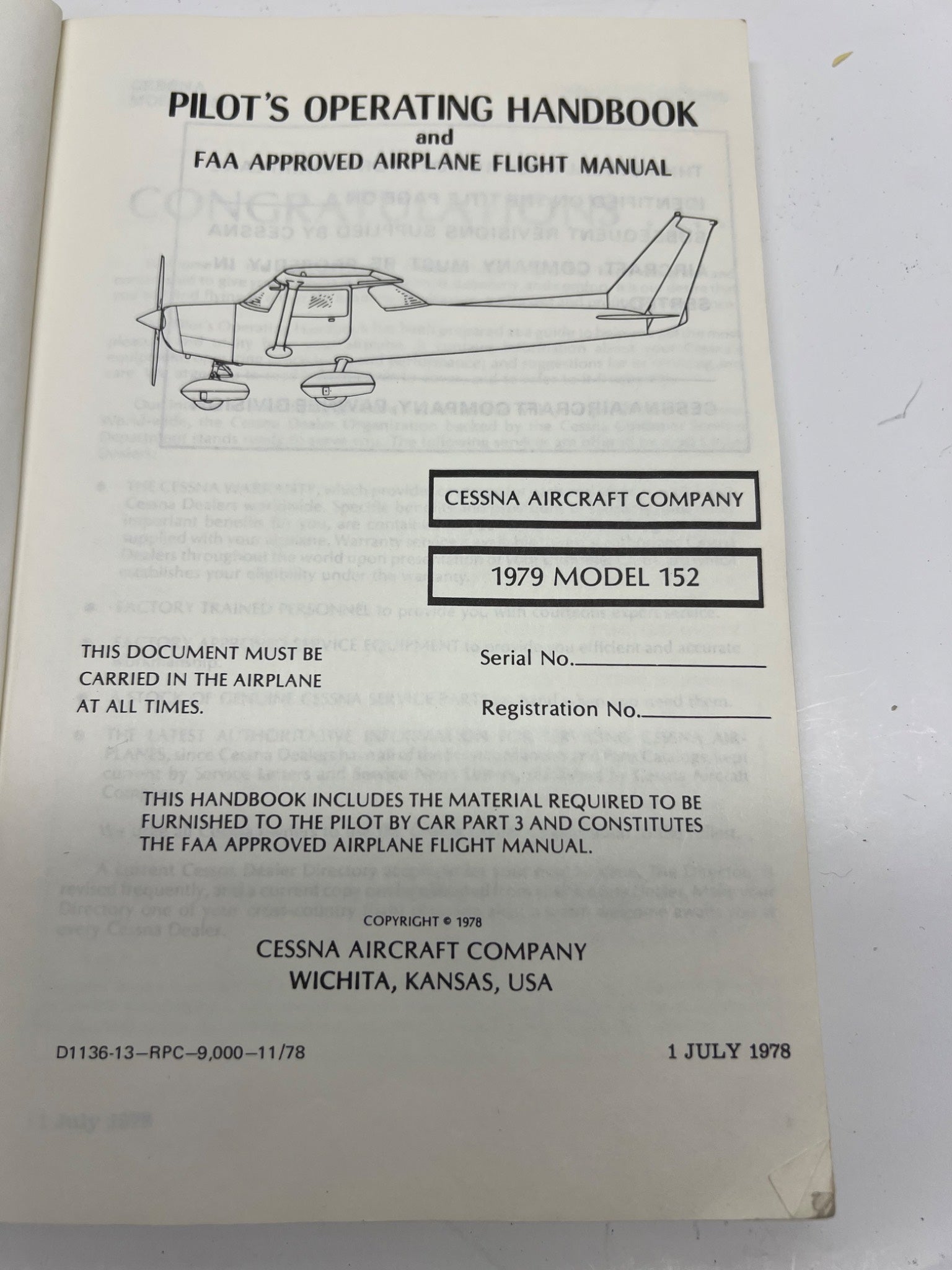 This 1979 Cessna Model 152 Information Manual, published by the Cessna Aircraft Company in Wichita, Kansas, USA, provides essential details for the operation and maintenance of the Cessna 152 airplane. Dated July 1, 1978, the manual functions as both a pilot's operating handbook and an FAA-approved airplane flight manual. Complete with operational details, diagrams, and limitations, this manual is a pivotal historical item for aviation enthusiasts or collectors.