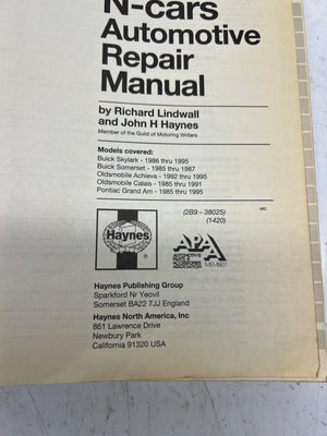 Published in England and the USA in 1995 by Haynes Publishing, this automotive repair manual covers General Motors N-cars, including Buick Skylark (1986-1995), Buick Somerset (1985-1987), Oldsmobile Achieva (1992-1995), Oldsmobile Calais (1985-1991), and Pontiac Grand Am (1985-1995). An invaluable resource for troubleshooting and repairs, it includes detailed instructions and diagrams.