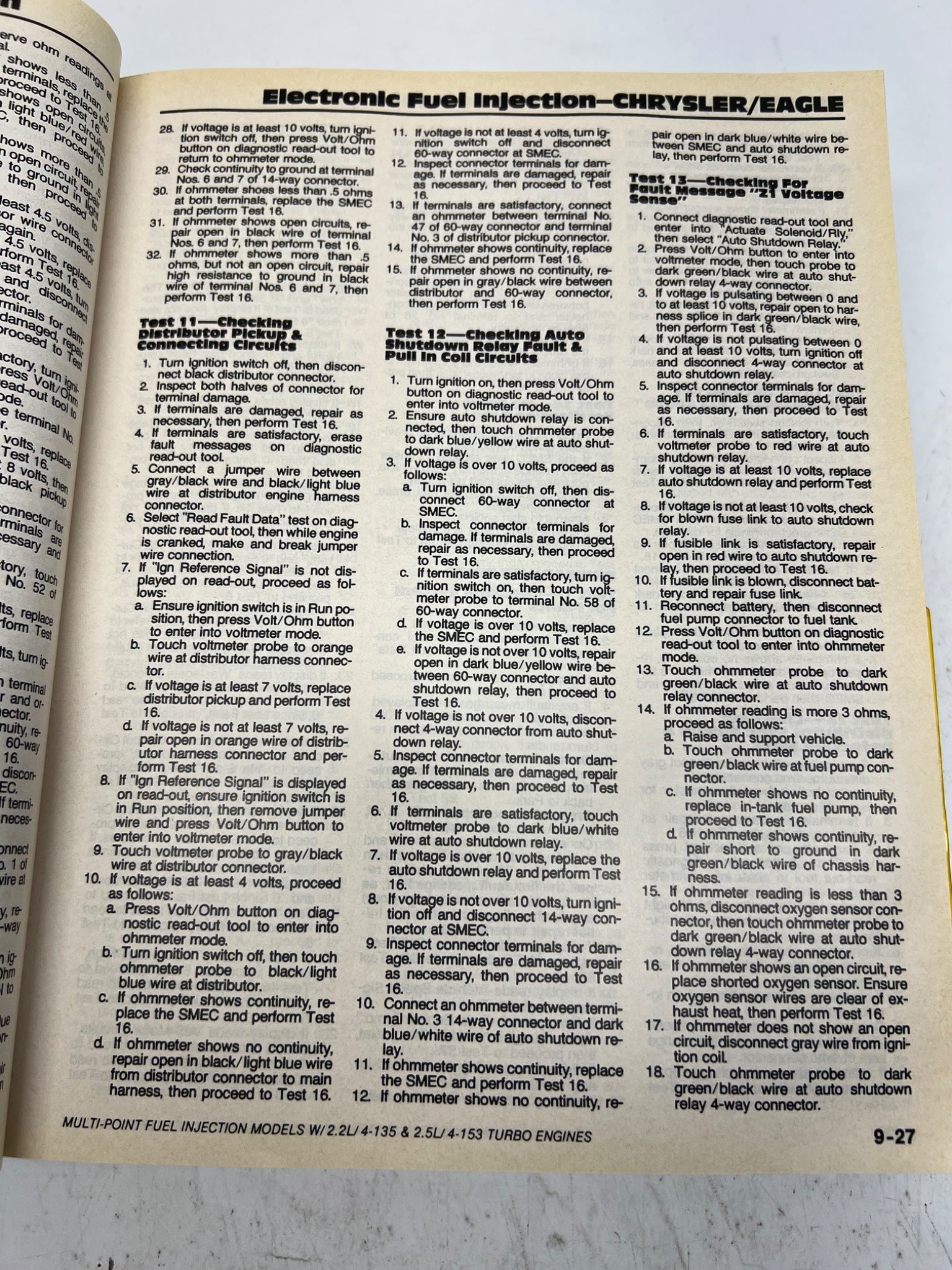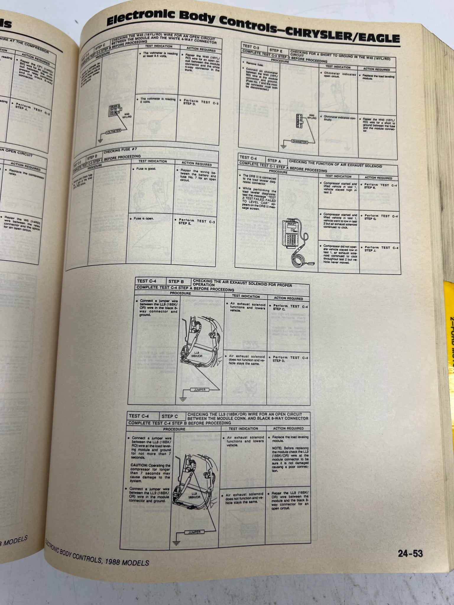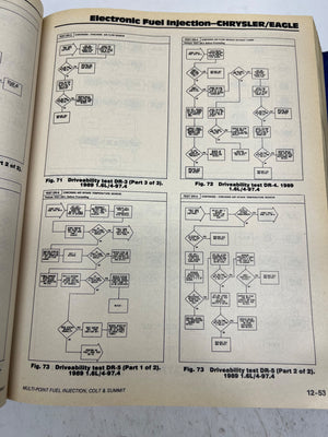 This 1991 Auto Engine Tune-Up and Electronics Manual was published by Motor, a division of The Hearst Corporation, in Troy, Michigan, USA. It is a Professional Service Trade Edition featuring detailed diagrams, troubleshooting procedures, and repair information for Chrysler Motors and Ford Motor Company vehicles. With 1990 copyright, this book served as a technical resource in automotive shops.