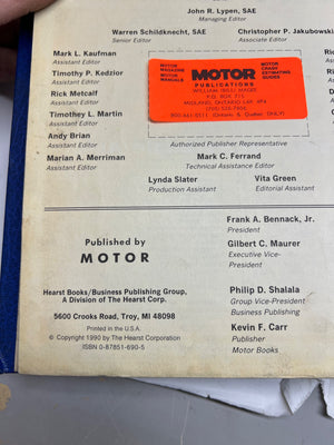Published in 1990 by Hearst Books/Business Publishing Group, this "Motor Auto Repair Manual" is tailored for Chrysler Motors and Ford Motor Company vehicles. Manufactured in the USA, it includes detailed repair guides, diagrams, and specifications for various automotive systems. This professional service trade edition is an essential tool for mechanics and restorers working with vehicles from the early 1990s.