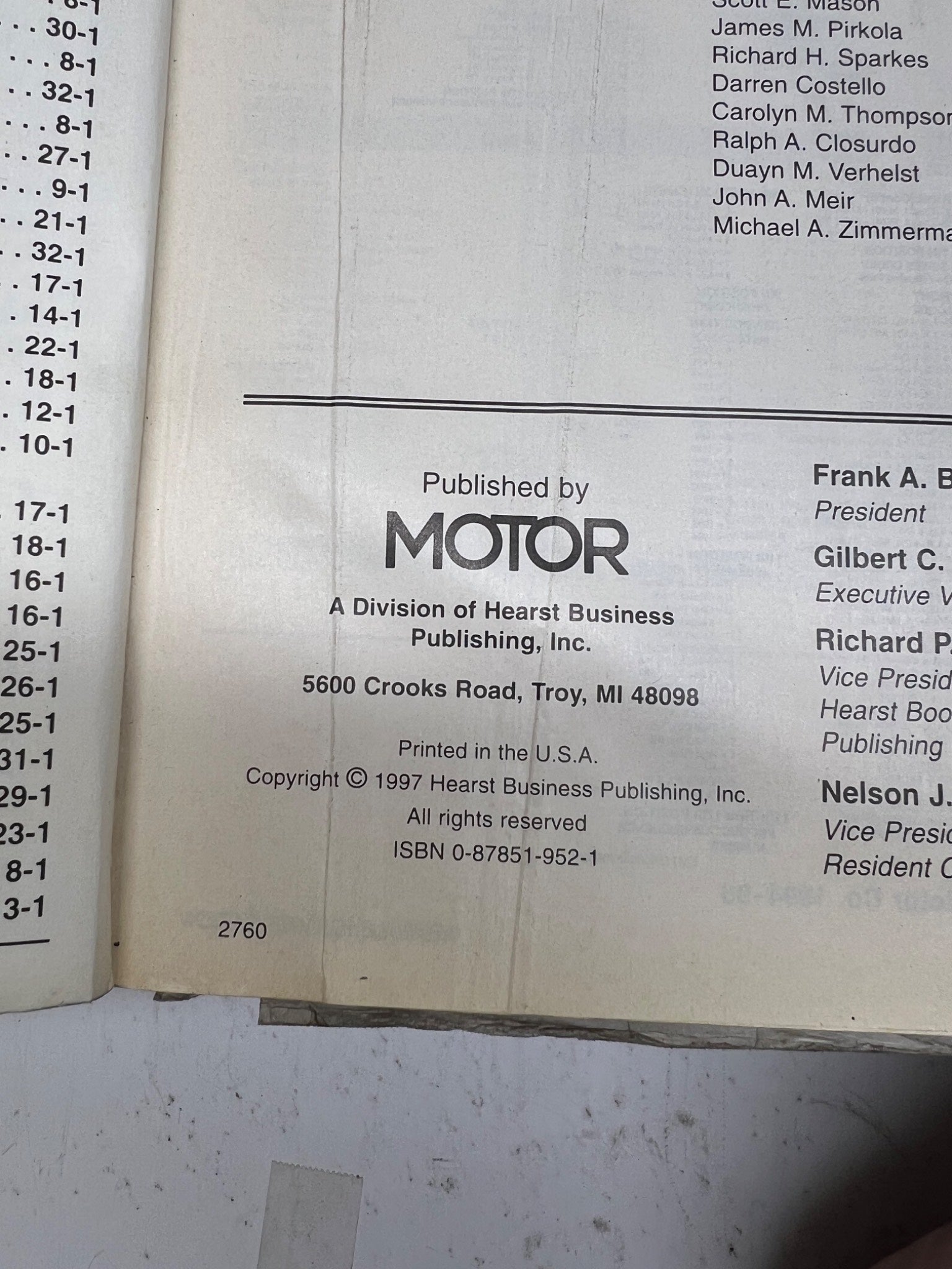 This 14th Edition 'Motor Light Truck & Van Repair Manual' covers 1994-1997 models, including minivans and sport-utility vehicles. Printed in the USA by Hearst Business Publishing, this professional service trade edition features detailed repair guides, troubleshooting steps, and specifications for vehicles from this era. A comprehensive resource for automotive maintenance enthusiasts and professionals alike.