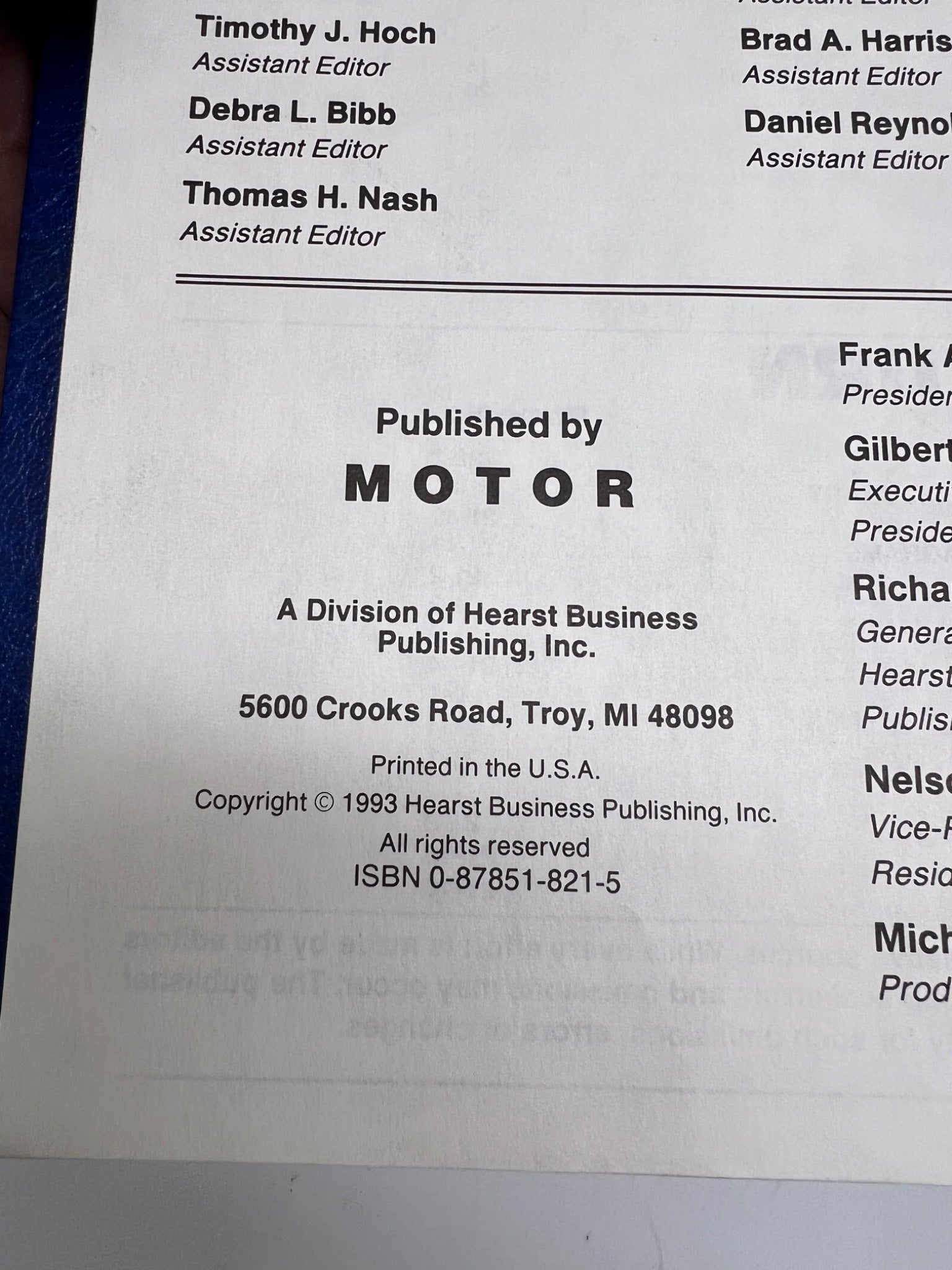 This 1994 General Motors Auto Engine Tune-Up & Electronics Manual, published by Motor Publications, is the Professional Service Trade Edition designed for automotive professionals. Manufactured in the U.S., it contains detailed diagrams, charts, and troubleshooting guides. Published by Hearst Business Publishing in 1993, it provides essential service information tailored for General Motors vehicles of the era.