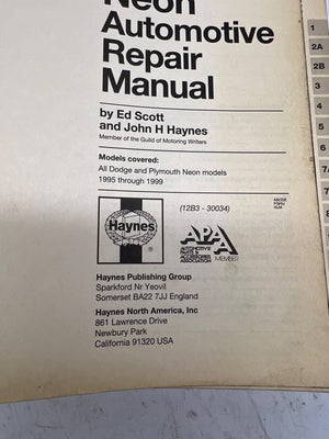 This Haynes Repair Manual covers all Dodge and Plymouth Neon models from 1995 to 1999. Published by Haynes Publishing Group in the USA, this comprehensive guide offers vehicle enthusiasts and professionals a complete teardown and rebuild manual. Featuring detailed illustrations and step-by-step instructions, it serves as a reliable reference for maintenance and repairs.