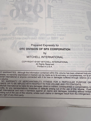 This is the 1996 edition of the OTC Domestic Pathfinder Technical Service Bulletin (TSB) Manual, published by Mitchell International. Designed for General Motors, Ford, and Chrysler vehicles from 1980 to 1995, this manual provides detailed service bulletins and repair information. Manufactured in the United States, it serves as an invaluable guide for technical reference and diagnostics of the listed automobile models.