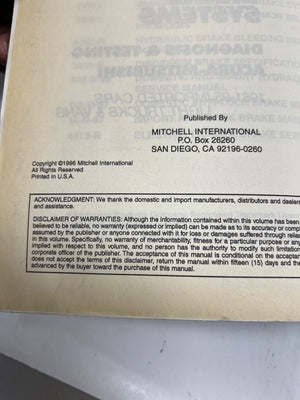 This 1996 Raybestos Import Anti-Lock Brake Systems Service Manual (Volume 2 of 2) provides extensive support for vehicles such as Nissan, Volvo, Peugeot, and Toyota. Published by Mitchell International in the United States, the manual includes detailed diagnostics, system schematics, and testing procedures to service anti-lock brake systems from the late 1980s to early 1990s.