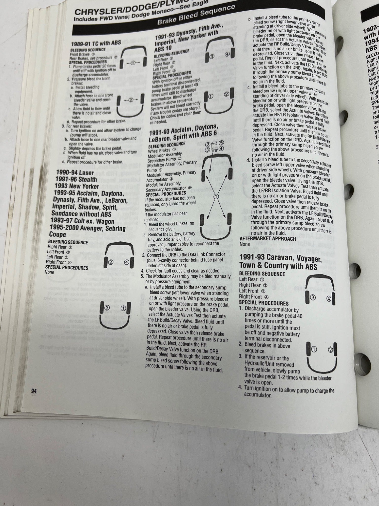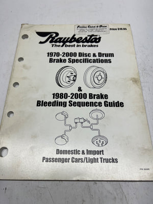 This 2000 Raybestos Brake Specification Guide provides comprehensive disc and drum brake specifications for 1970-2000 domestic and import passenger cars and light trucks. It includes a 1980-2000 brake bleeding sequence guide. Published in the United States by Hearst Business Publishing, this essential reference is designed for automotive professionals focused on brake systems.