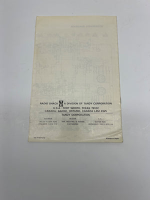 This is the owner's manual for the CB 4-Watt Solid-State Transceiver (Cat. No. 21-900) by Realistic. Manufactured by Radio Shack, a division of Tandy Corporation, in Fort Worth, Texas, USA, and Barrie, Ontario, Canada. The manual includes operating instructions, specifications, and technical diagrams useful for setup and understanding functionality. A valuable resource for collectors and enthusiasts.