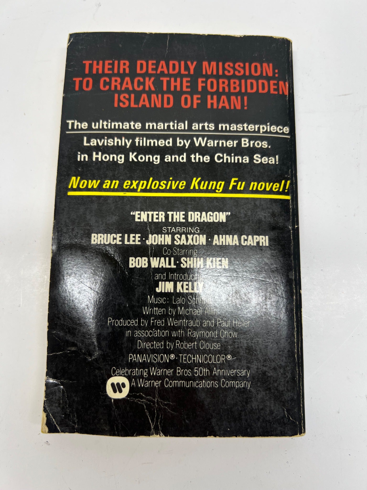 This is a 1973 paperback novelization of the iconic film "Enter the Dragon," penned by Mike Roote. Published by Award Books and based on the screenplay by Michael Allin, this book captures the legendary martial arts story starring Bruce Lee. Manufactured in the United States of America, it offers collectors a unique connection to the film's release and Warner Bros. heritage.