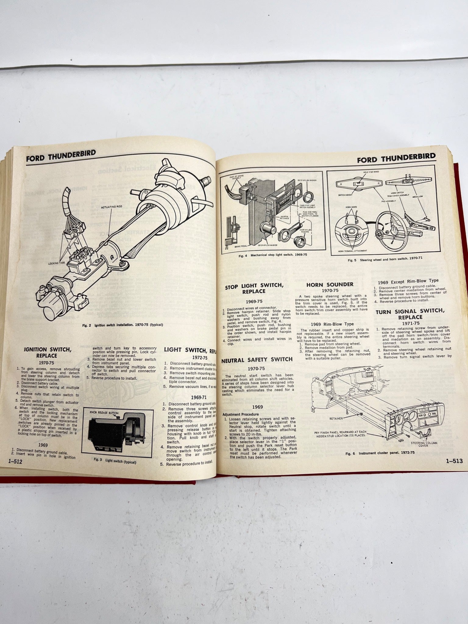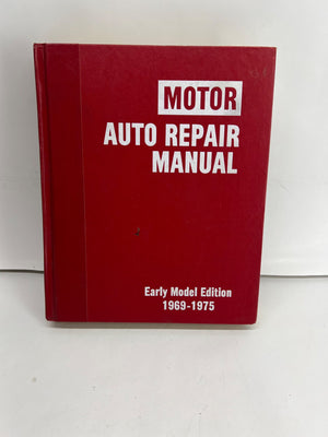 This comprehensive 'Motor Auto Repair Manual' covers vehicle models from 1969 to 1975 in an early model edition format. Manufactured in the United States, it contains detailed diagrams, instructions, and specifications for repairs on various makes, including American Motors and Ford Thunderbird. This hardcover edition is a valuable resource for automotive repair history and enthusiasts.