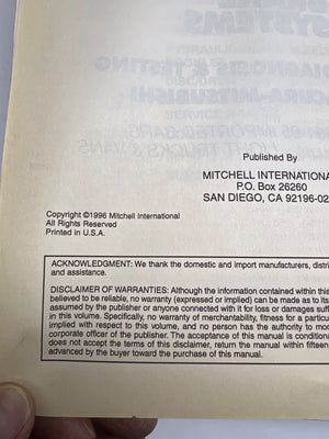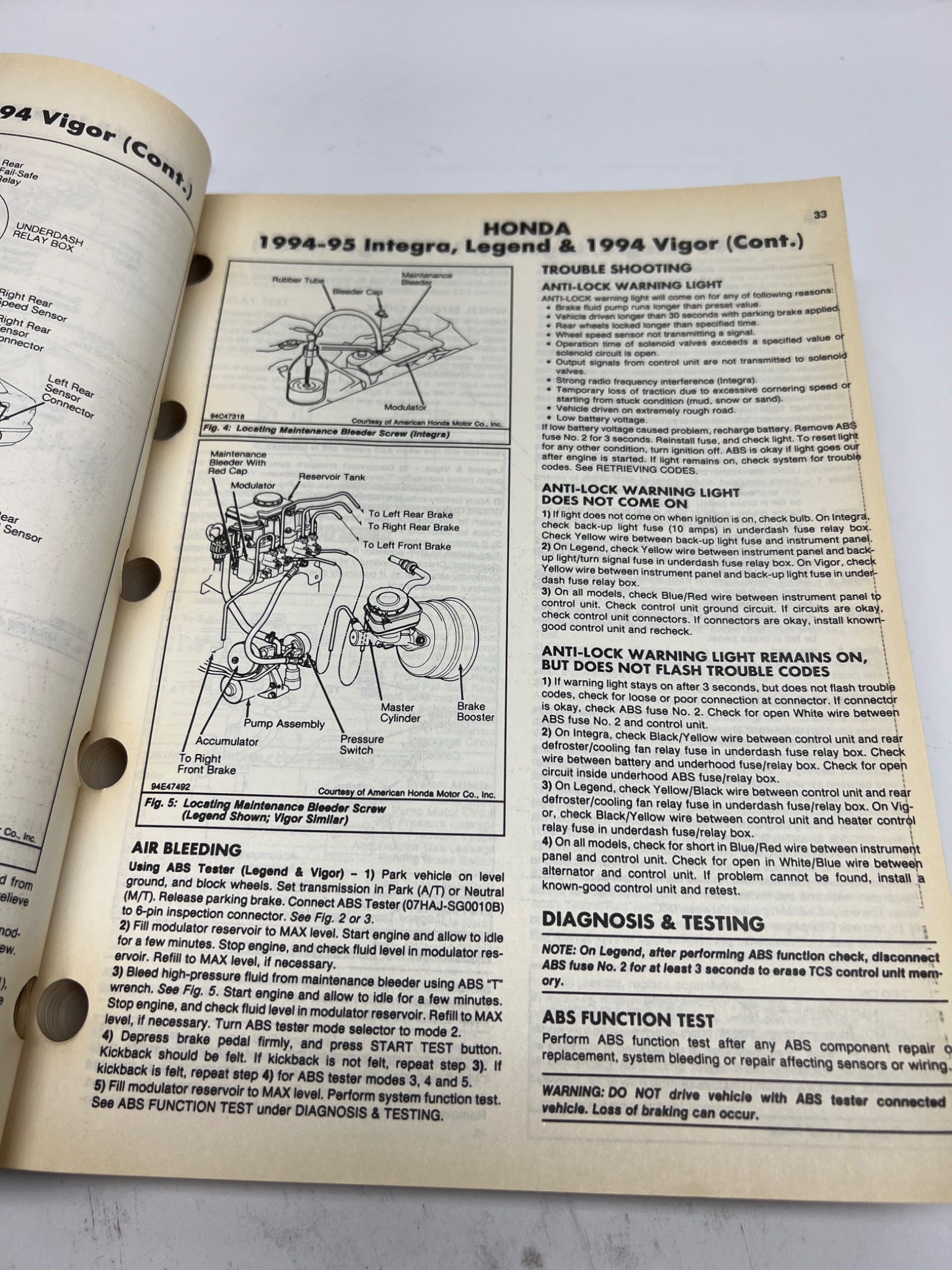 This service manual, published in 1996 by Mitchell International in the USA, is a comprehensive guide to import anti-lock brake systems. Covering models such as Honda, Chrysler, Mitsubishi, and Geo Prizm between 1991 and 1995, it provides detailed diagnostics, diagrams, and troubleshooting procedures. The volume is an essential resource for those working with these brake systems and includes factory-authorized data.