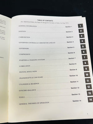 Briggs & Stratton repair manual for single-cylinder 4-cycle engines. Covers sections on ignition, carburetion, compression, governors, and more. Includes 14 detailed sections with diagrams and explanations designed for maintenance and repairs. Published by Briggs & Stratton Corporation. Some wear may be present on the cover.