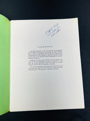 Original P&H Excavators Model 655B Care and Operation Manual published by Harnischfeger Corporation, Milwaukee, Wisconsin, USA. Includes guidelines for machine operation and maintenance. The manual has clear signs of use but remains in readable condition. Contains approximately 128 pages with technical illustrations and instructions.