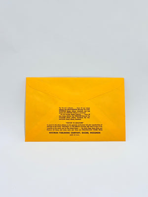 Ind. Africa I stamp packet manufactured by Whitman Publishing Company, Racine, Wisconsin, USA. Includes a collection of diverse stamps in an orange envelope marked 'All Different, Genuine.' The envelope features branding and product details. Stamps depict various themes, including wildlife and historical icons.