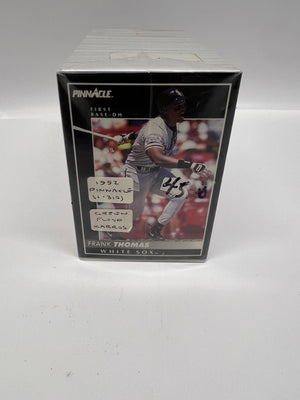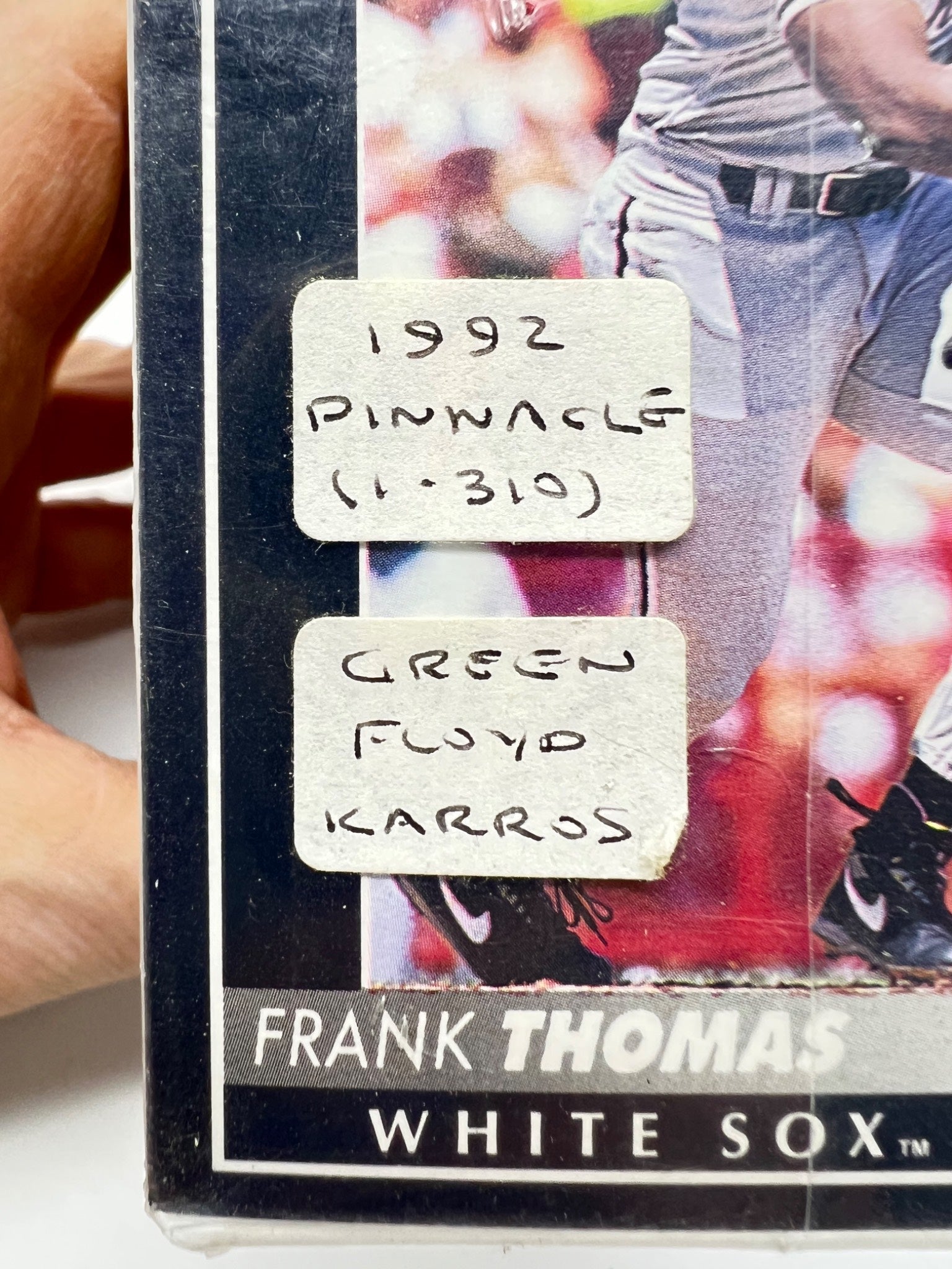 This 1992 Pinnacle baseball card set features cards numbered 1 through 310. Still sealed in its original packaging, the box prominently showcases Frank Thomas, one of the era’s standout players. As noted, this set contains cards of players like Green, Floyd, and Karros, adding further appeal to collectors seeking key figures of the time.