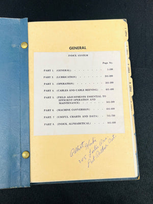 Operator's manual for Lima Type 34, 1 3/4 cubic yard Shovel, Crane, Clamshell, Dragline, and Pull Shovel. Published by Baldwin-Lima-Hamilton Corporation, Construction Equipment Division, Lima, Ohio, USA. Includes index system with sections covering lubrication, operation, and repairs. Visible wear but in readable condition.