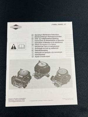 Original Briggs & Stratton engine manuals, including instructions for models 210000, 280000, and 31F series. Features maintenance, operation, and compliance guidelines. Manuals are in good condition with all pages intact. Useful technical information for engine repair or operation.