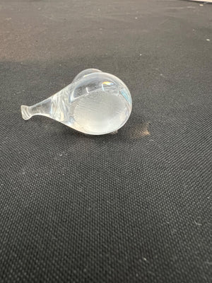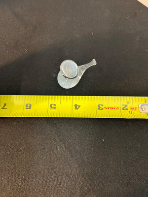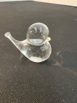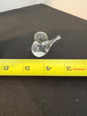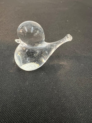 Clear Glass Bird Figurine featuring a smooth design with a rounded shell and elongated body. Measures approximately 5 inches in length. Suitable for decorative display. Condition is good with no visible chips or damage.