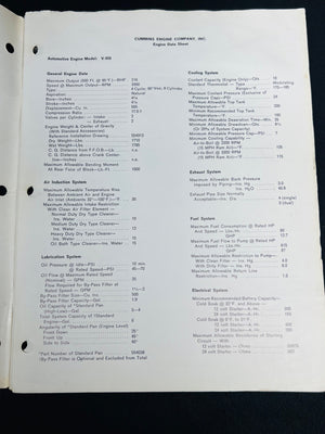 Cummins Automotive Diesel Engines Operation and Maintenance Manual. Features comprehensive instructions and information on diesel engine operation and maintenance, with sections such as lubrication, coolant systems, and teardown procedures. Designed for professional and personal use. Pre-punched for binder storage. Moderate wear consistent with use.