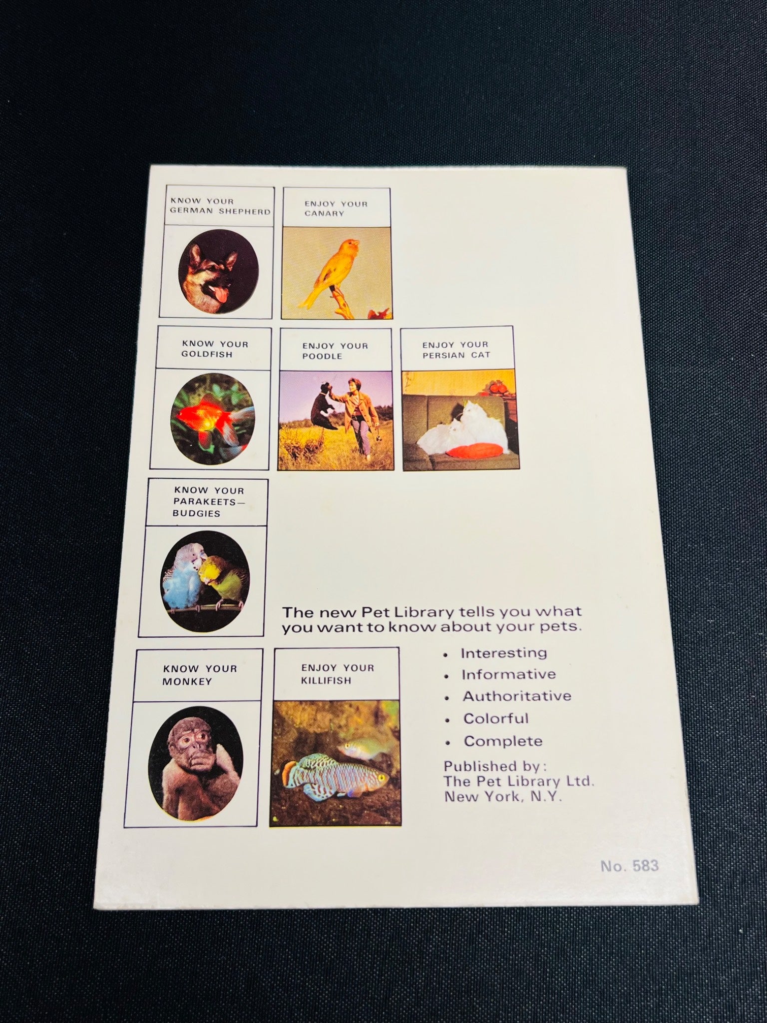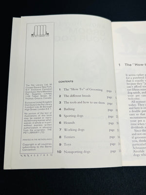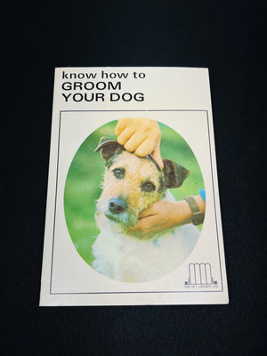 Know How to Groom Your Dog by The Pet Library Ltd., New York, NY. Includes information on grooming different breeds, tools, bathing, specific dog groupings, and more. Copyright marked as 1967. Softcover format with 11 pages. Clean and intact with minor wear visible on the cover.