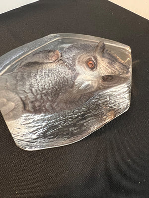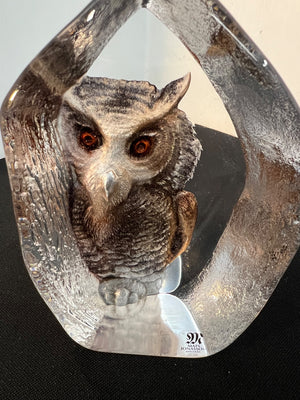 Mats Jonasson OWL Full Lead Crystal Relief Sculpture with Box