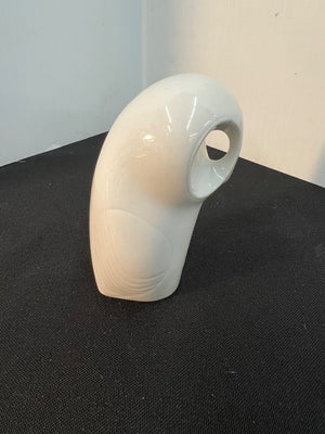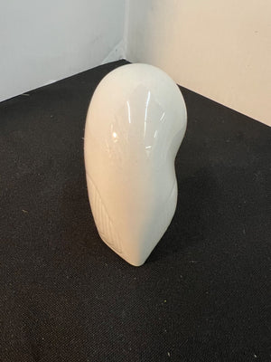 A porcelain owl figurine by Royal Dux, featuring an elegant simplistic design with smooth contours and a glossy white finish. Marked on the base with the Royal Dux hallmark and additional triangle stamp, indicating its authenticity. Stands approximately 5 inches tall as shown with scale.