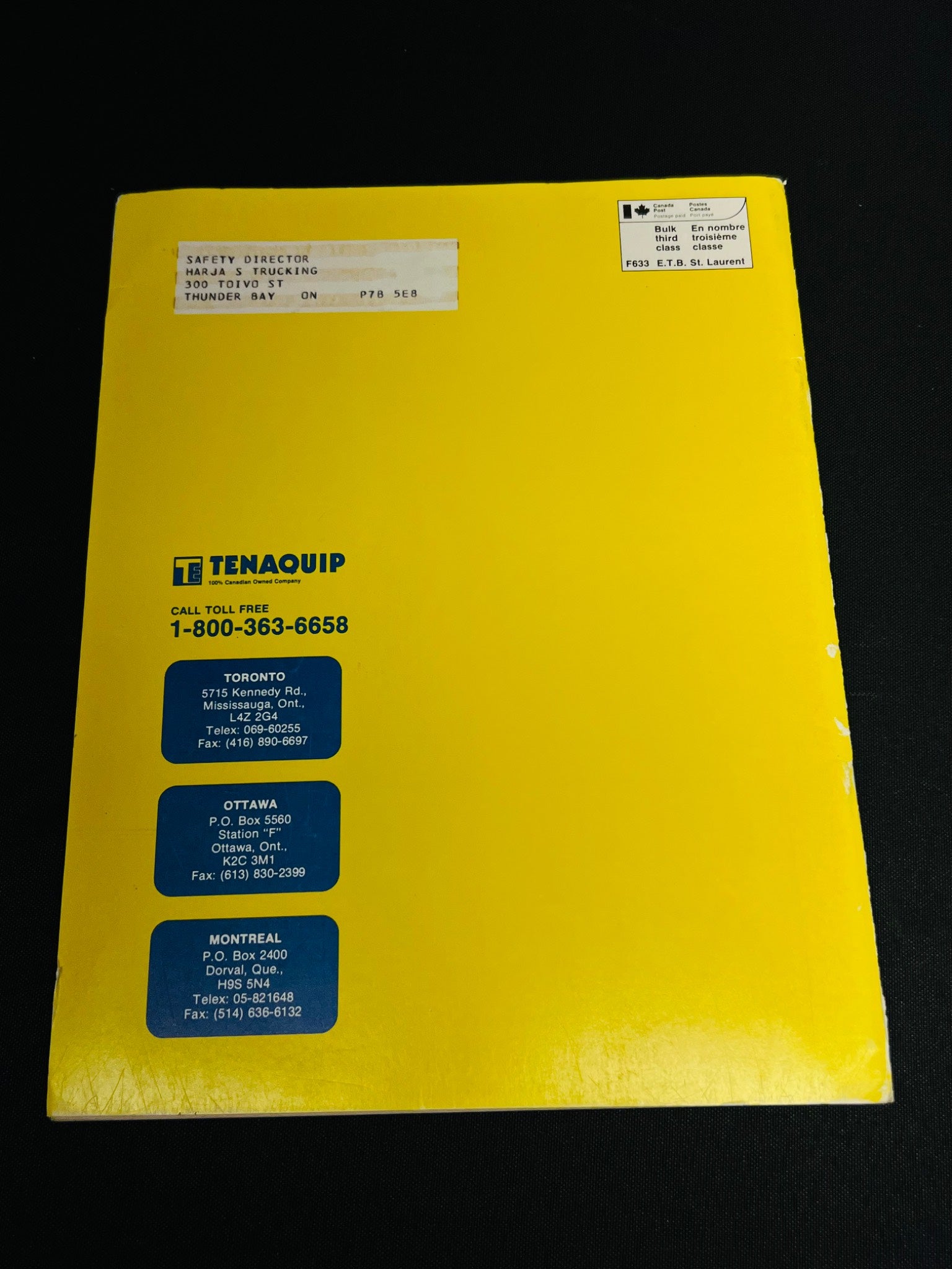 Tenaquip Safety Catalogue featuring a variety of workplace safety items, including safety caps, bump caps, eyewear, and fire safety products. The catalog provides detailed product descriptions and specifications. Cover and internal pages display clear illustrations and company contact information. Good condition with minor wear consistent with use.