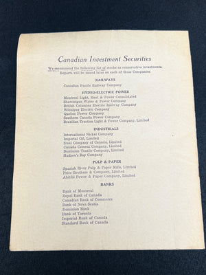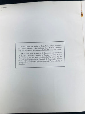 David Cowan’s book, ‘The Advantages of Common Stock Investments,’ published by The Canadian British Corporation Limited. This booklet discusses aspects of stock investments and Canadian investment securities, including railways, hydro-electric power, industrials, and banking sectors. It provides insights into North American and Canadian markets.